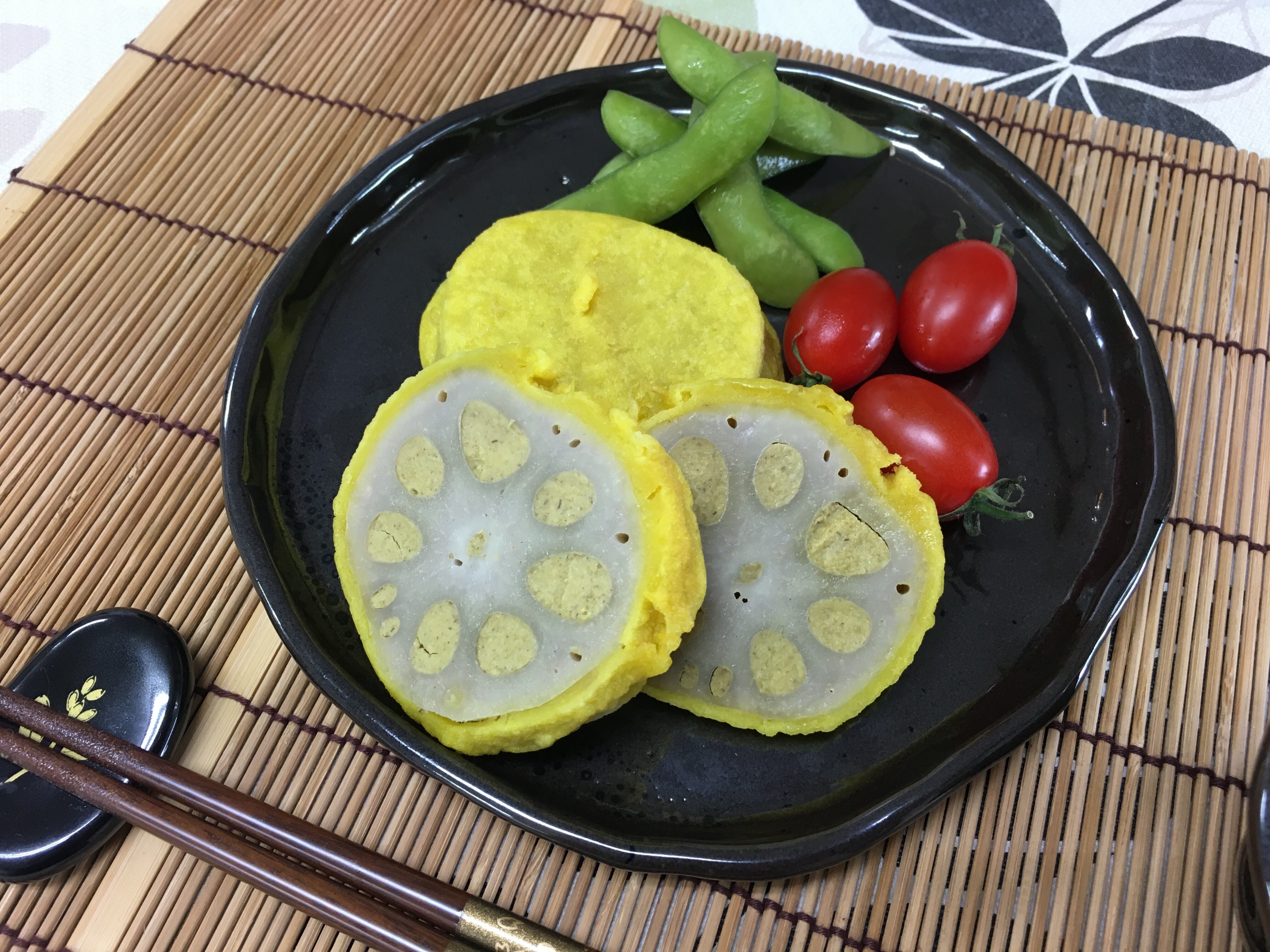 原材料名:蓮根(中国)、小麦粉、みそ、からし、食塩、揚げ油(なたね油)/調味料(アミノ酸等)、甘味料(ステビア)、ベーキングパウダー、保存料(ソルビン酸K)、着色料(うこん、黄色4号)、ビタミンC、ビタミンB2(一部に小麦を含む)